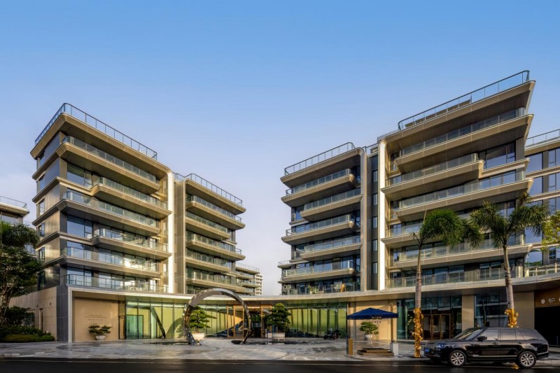 不同于高密度开发的沿海项目,“吾山吾海”规划容积率仅为1.5,绿地率达40%,打造低密度、小体量的山海社区。建筑采用全铝板+玻璃幕墙外立面,兼顾耐久性与现代美学;社区内设双层立体园林及约3000㎡星级会所,涵盖泳池、私宴厅、健康空间等功能模块。